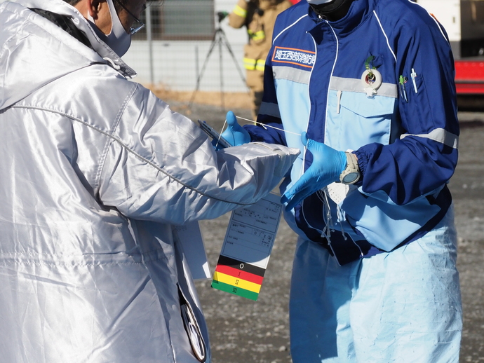 [画像]傷病者にトリアージタッグをつける写真(269.0KB)