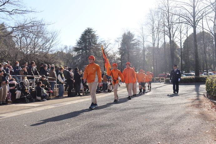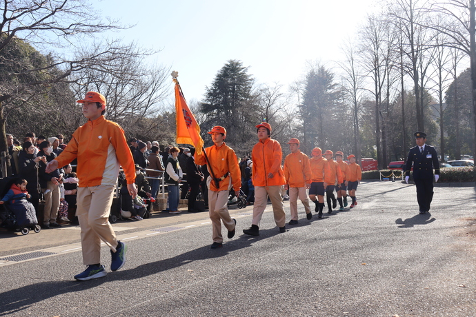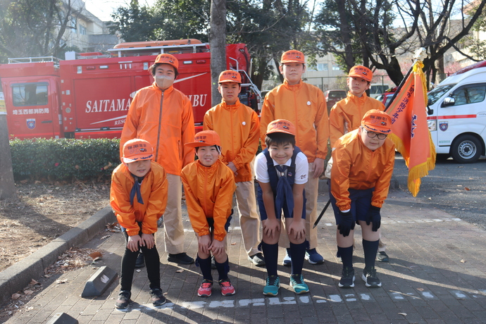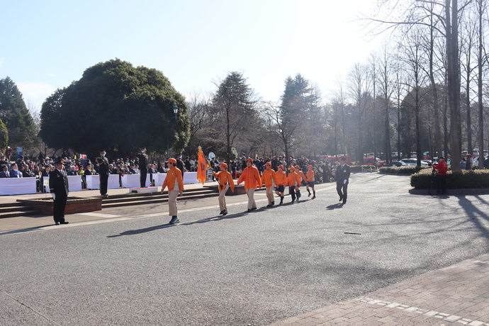 彩の森入間公園内で行われた入間市消防出初め式に8人の入間市消防少年団員が参加し、徒列分列行進を行いました。