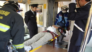 この訓練は、過日他線の電車内で相次いで発生した傷害事件を想定し、迅速的確な初動対応や関係機関との連携強化を図るべく実施したものです。