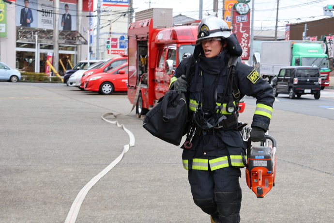 この訓練は、所沢中央署の入職3年以下の職員に対して、ベテラン職員の豊富な知識と経験を若手職員へ継承し、引き続き質の高い住民サービスの提供を継続すると共に、若手職員の消防活動技術習得状況を把握することを目的とし毎年行われています。