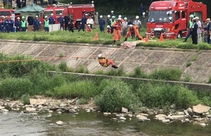 この訓練は河川の急激な水位上昇により中洲に人が取り残されているとの想定で、東京消防庁清瀬消防署が救命索発射銃でロープを設定し、所沢東消防署特別救助隊はロープブリッジ救出で活動を行いました。