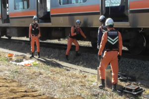 所沢東消防署では、令和7年12月5日(金曜日)に、管轄するJR東日本武蔵野統括センター構内において、JR東日本武蔵野統括センター社員と電車事故合同訓練を実施しました。