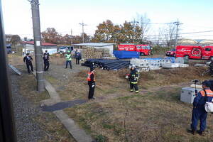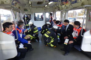 この訓練は、近年、走行中の電車内で発生しているモバイルバッテリー火災による、多数の負傷者が発生したことを想定し、迅速的確な初動対応や関係機関との連携強化を図ることを目的に実施したものです。