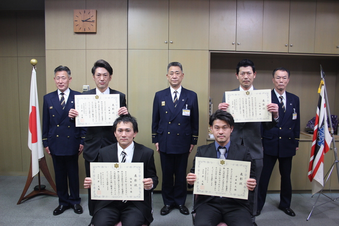 4名の行動は他の模範であり、その功労を称え消防長から表彰状と記念品が贈呈されました。