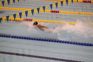 飛び込みからゴールまで顔を水面につけることなく、水難救助の基本的な2種類の泳法で50メートルを泳ぎ、タイムを競います。
