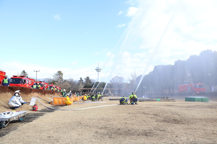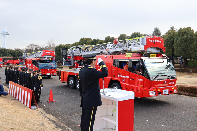 本組合の消防出初式は、市民の皆様が身近に安心・安全を実感していただけるよう、消防力及び関係機関と連携した災害対応力等を披露するため、埼玉西部消防局と所沢市の共催により開催します。