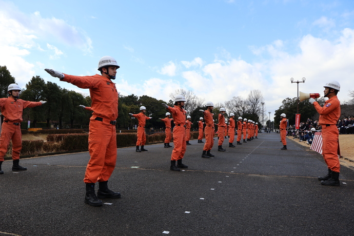 救助隊員の一糸乱れぬ部隊行動を披露 |