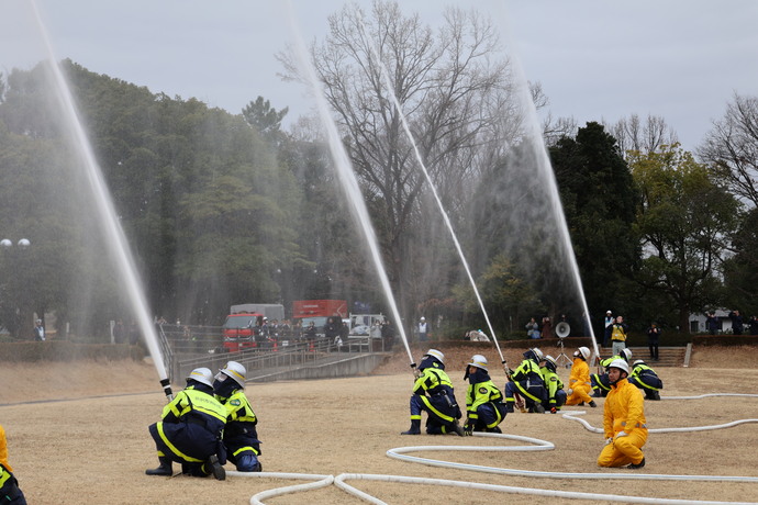 - 消防団一斉放水訓練