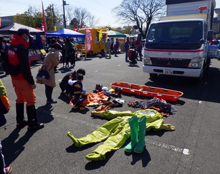 飯能日高消防署では消防車および資機材の展示、災害事故防止リーフレット等の配布、山岳救助隊のPR、起震車による地震体験を実施しました。