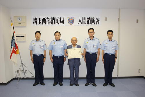 2名の迅速かつ的確な救命処置が傷病者の一命を取りとめる一因となったもので、その功績を称え消防長から表彰状と記念品が授与されました(戸田氏については、所用により欠席されました。)。